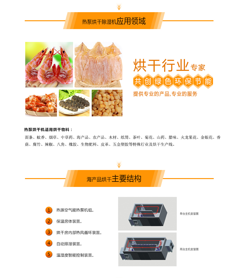 我公司生產(chǎn)的海產(chǎn)品烘干機采用空氣能熱泵技術(shù),可實現(xiàn)低溫(10-20℃)、模擬太陽溫度(30-65℃)對海產(chǎn)品進行烘干,適合不同產(chǎn)品種類的烘干要求,烘干后的成品品質(zhì)好,干凈衛(wèi)生,設(shè)備無需專職人員看守,自動控制烘干溫度。采用電作為能源,生產(chǎn)的過程中無廢氣、廢水、廢渣產(chǎn)生。