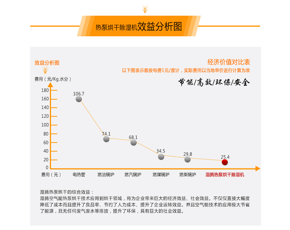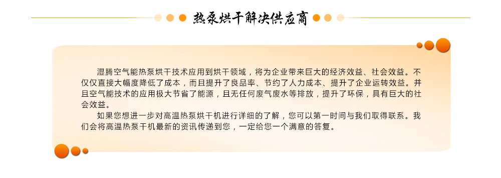 濕騰空氣能熱泵烘干技術應用到烘干領域,將為企業帶來巨大的經濟效益、社會效益。不僅直接大幅度降低了成本,而且提升了良品率、節約了人力成本、提升了企業運轉效益。并且空氣能技術的應用極大節省了能源,無任何廢氣廢水等排放,提升了環保,具有巨大的社會效益。