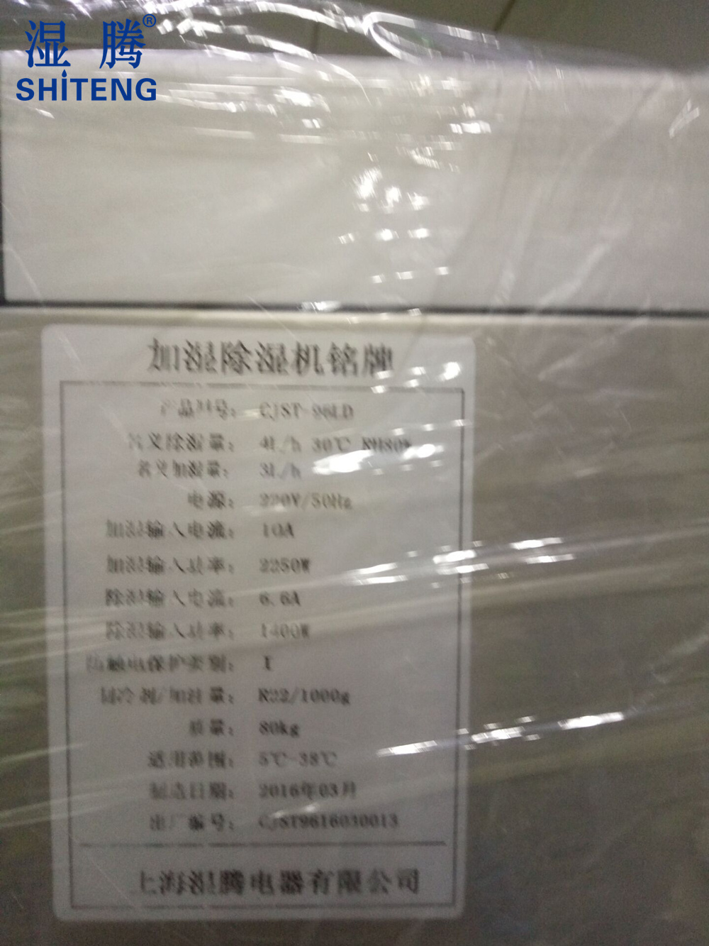 恒濕機-除濕加濕一體機CJST-96LD 出廠銘牌