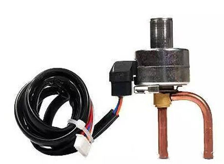 四通換向閥是一種兩進兩出的特殊電磁閥,用于壓縮式熱泵系統供暖與制冷工況轉換。當熱泵從制冷工況轉為供暖工況時,四通換向閥動作(轉到供暖工況位置),于是室內蒸發器作為冷凝器用,壓縮機排出的高溫制冷劑蒸汽經四通流入室內蒸發器(此時作冷凝器用),而冷凝器則成為蒸發器,完成工況轉換。