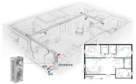 新風機,一方面可以確保新風,又避免采暖期間新風量過大造成的能源浪費,同時可以避免業主過分的節約,比如說夜間開空調,把窗戶所有都密閉,導致新風量不夠帶來的危害。