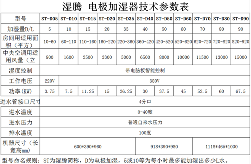 濕騰ST-D系列電極加濕器,主要應用于獨立工作環境,進行獨立加濕和控制。人性化的設計理念,結合一貫的品質保證,突出產品的操作簡單和維護便捷等特點。只需要接通進水、排水管路和電源,即可完成智能化、自動化的加濕工作,該過程無需專人監控。